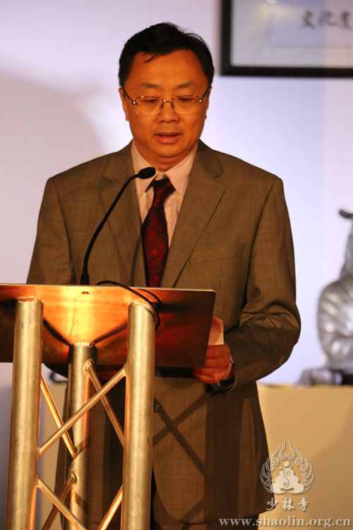 中国驻英国大使馆公使倪坚代表刘晓明大使,向第三届欧洲少林文化节在伦敦召开表示衷心地祝贺,并宣读了刘晓明大使的贺信。刘大使在贺信中说:“近年来,少林寺积极践行‘走出去’发展战略,少林文化远播四海,少林弟子遍布五洲,为中外文化交流作出了重要贡献,成为中华传统文化走向世界的一张闪亮名片。”