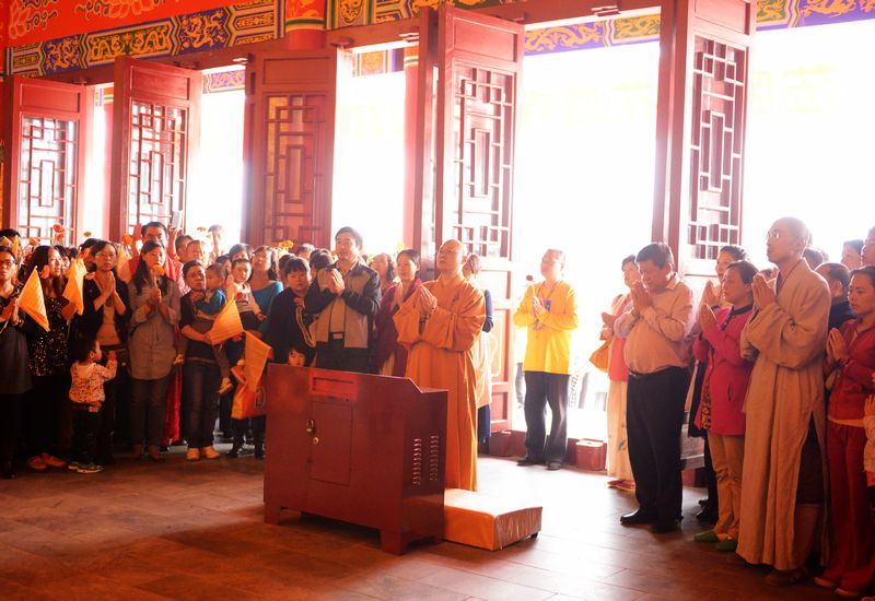 暨北方四省市国庆弘法行程后,宁波市慧日禅寺住持传喜法师不辞辛苦再次率领弘法团队展开新一轮的弘法之旅,应邀首次进豫弘法,于2014年10月10日下午抵达河南省郑州市莲花源寺。在庄严的大雄宝殿,传喜法师与来自河南省各地的信众一同讽诵《心经》礼佛,并做为晚课回向法界众生离苦得乐。