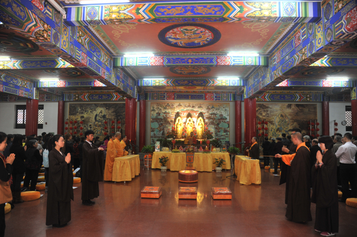 466名善信在文殊院文殊阁受三皈依,成为佛弟子