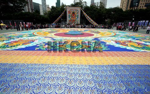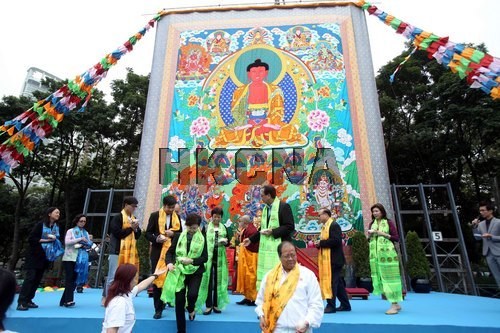 2014年11月13日,香港第三届“香港晒佛节”在维园举行,首度展示全球最大38米高药师佛巨幅唐卡,祈愿为700万香港人注入正能量,对抗伊波拉病毒的威胁。38米药师佛与15米阿弥陀佛唐卡同时展示。