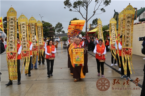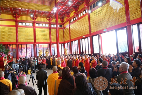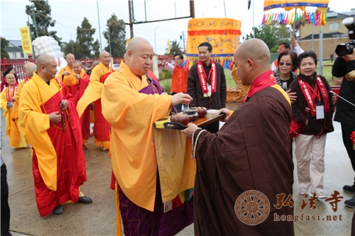 当地时间上午9:30分,明月居士林庆典活动正式开始,随着印顺大和尚一句“诸佛菩萨现澳洲,法语缤纷妙难酬。我等率众殷勤请,放光现瑞化阎浮”安坐法语,整个开光活动拉开帷幕,庄严殊胜。法会举行前,天雨濛濛;开光伊始,如启天幕,碧空如洗,祥云飞扬于大雄宝殿金灿灿的脊檐。在场的所有人兴奋不已,为自己生活在这边福地,享受佛法恩泽,沐浴佛恩,为大和尚的慈悲加持,无不欢欣鼓舞。