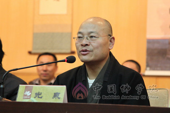 光泉法师在讲话中提到,中国佛学院创办之今,为佛教界培养了大批人才。目前,中国佛教仍然面临人才匮乏的局面,人才培养是当前佛教界的头等大事。希望中国佛学院培养出更多的能够住持一方、教化一方的全方位佛教人才,跟上整个佛教发展的需求,扭转当前佛教与社会发展脱轨的不利局面。