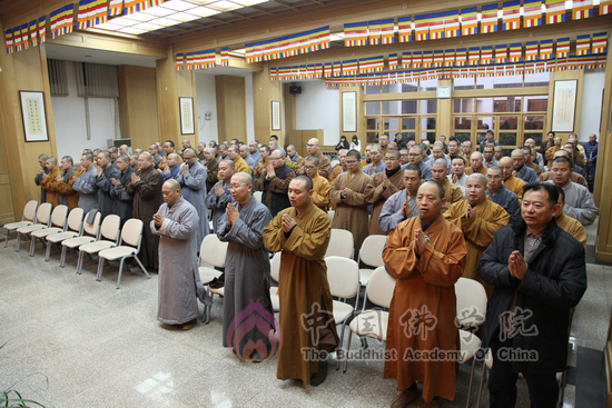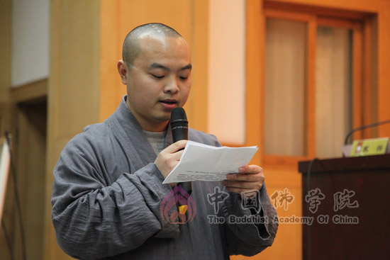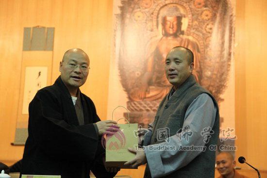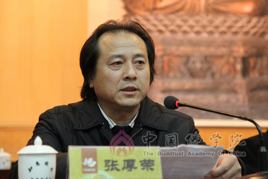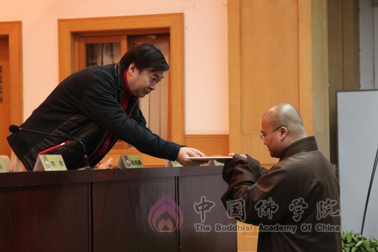 张厚荣副院长做了讲话。对杭州灵隐寺和盛荣房地产公司对中国佛学院的大力资助表示衷心的感谢!他指出,常言:“上有天堂,下有苏杭”,历来有“东南佛国”之称,此中杭州灵隐寺则享有盛名。而灵隐寺住持光泉法师在加强寺院建设的同时更是密切关注佛教的弘传与交流,承办讲经活动,兴办杭州佛学院。另外,更为中国佛学院连续五年设立图书资金及奖教、奖学金。张厚荣副院长又说,盛荣房地产开发公司总经理李九治先生,不仅热忠于慈善事业,更是对佛教有着深厚的感情,发愿连续十年为佛学院设立奖学金。我们将以此为契机,在新的一年里,更加努力工作,继续加强自身建设,努力提高教学质量,进一步发展中国佛教教育事业作为回报!