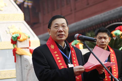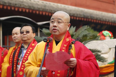 越城区委统战部副部长、区民宗局王永兴局长主持庆典仪式,市佛教协会副会长、越城区佛教协会会长、龙华古寺监院了成法师致欢迎词。