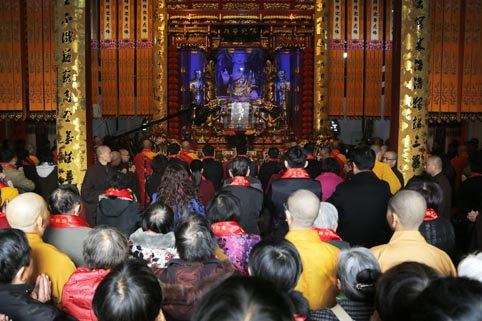 2014年12月8日(农历十月十七),佛光普照,梵呗悠扬,龙天欢喜,海众云集。浙江省绍兴市越城区龙华古寺大殿佛像及世界和平吉祥宝塔开光法会隆重举行。省民宗委宗教一处吴梦宝处长,绍兴市委统战部副部长、市民宗局黄文刚局长,越城区人民政府汤枥钧副区长,省佛教协会副秘书长、市佛教协会会长、炉峰禅寺方丈、戒珠讲寺住持净芳法师分别致词祝贺。