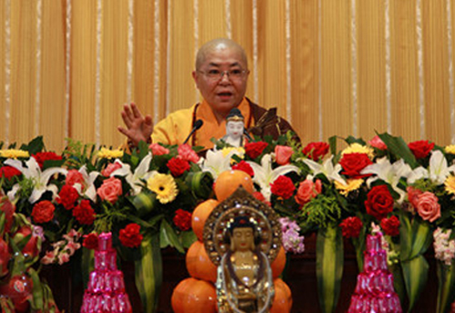 法会期间,衍天法师每天法雨缤纷,以智慧海润泽僧众心田。下午13时30分,衍天法师不辞辛苦地为大众作了《皈命念佛法》的重要讲法,开示大家:以深信愿,持佛名号,以摄心专注来修持念佛,就是为了提升大家念佛的层次,以达到一心不乱为目的。真正念佛求生西方的人,必须要提起正念念佛,以一心不乱为目的,这样才有把握往生。一切法因缘生,我们掌控了正确的方法,我们就能够正确地跟弥陀的功德感应道交,就一定能得到念佛三昧。与会大众凝神静气,悉心聆听,在心中播下了出烦恼渊、至菩提岸的金刚种子,增强了精进念佛、普渡众生的愿力,坚定了往生西方、同生佛道的信心。