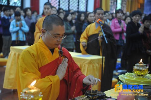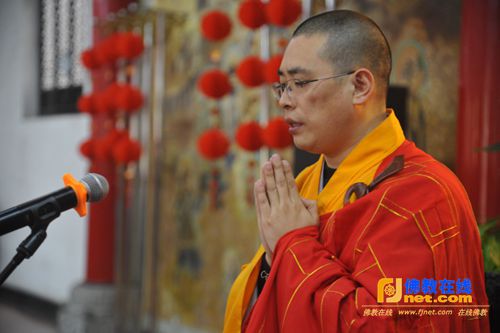 成都文殊院举行2014年第十一次皈依法会,弘法利生部总干事庆妙法师拈香主法
