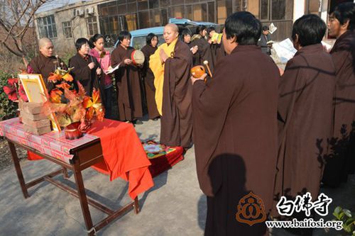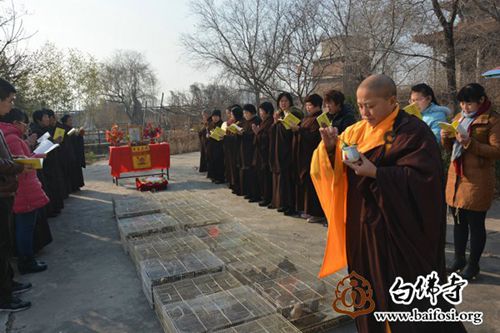 上午9时,白佛寺常住法师带领四众弟子于邢台沙河市郊念佛堂外空地举行放生仪式。法会由白佛寺悟净法师主法,并带领居士信众念诵《杨枝净水赞》、《大悲咒》、《般若波罗蜜多心经》。悟净法师为放生物命虔诚说法,按照仪轨代物命忏悔罪业、授三皈依、持诵经咒、遍洒甘露,通过如法放生仪轨帮助放生物命与佛结缘,希望它们命终之时顿开妙悟、超出轮回、往生净土。并希望通过放生的仪式,让十方信众与放生的生灵共发菩提心,观身过患,慈悯众生。