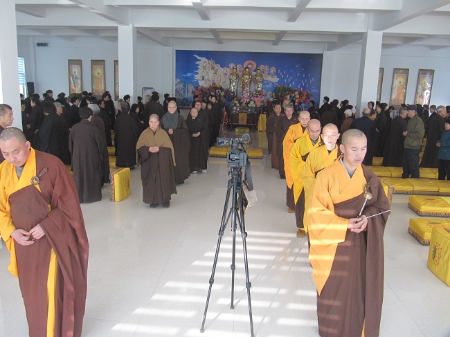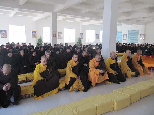 应我们甘肃兰州万寿寺诚挚邀请,12月10至16日,江西庐山东林寺德凯、盖培、德一、德愿、慧璨五位法师前来万寿寺举行冬季佛七。这次佛七共有二百多人参加,分别来自兰州市城关区、西固区和通渭、甘谷、永靖以及陕西 、宁夏、湖北等地区,年龄最大的84岁,最小的19岁,这是万寿寺首届佛七,也是兰州居士和广大信众企盼已久的一大盛事。