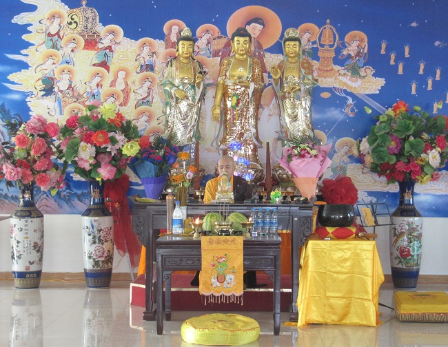下午二时,四众弟子齐聚念佛堂,在悦众师的引领下,大家诵《阿弥陀经》、唱《赞佛偈》后,佛七念佛正式开始。整个七天中,清畅哀亮、微妙和雅的东林佛号持续在陇原大地响起,震撼着每个人的心。在佛七当中,德凯法 师每天用半小时的时间带领大家学习了有关印光大师和彻悟大师对念佛法门的开示,以及念佛的要领和方法,并解答居士们提出的相关问题。