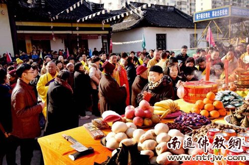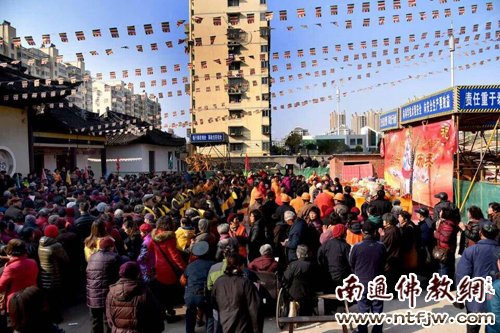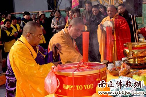 2014年12月27日上午,位于南通市钟秀乡的南通佛教居士林内,锣鼓喧天、钟鼓齐鸣,人潮涌动,经过四个月的紧张施工,重建后的居士林正在隆重举行藏经楼上梁庆典活动。法会庄严殊胜,法喜充满。