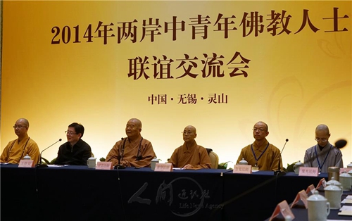 由国家宗教局主办的“首届两岸中青年佛教人士联谊交流会”,2014年11月30日至12月2日将分别于无锡灵山大佛及宜兴大觉寺举行,中国佛教协会、中国佛学院、上海、重庆、浙江、江苏、福建、陕西等地佛教协会30位代表,以及台湾佛光山、福智、法鼓山、圆光佛学院、福严佛学院、灵岩山寺等教界代表32人,共百余人与会。