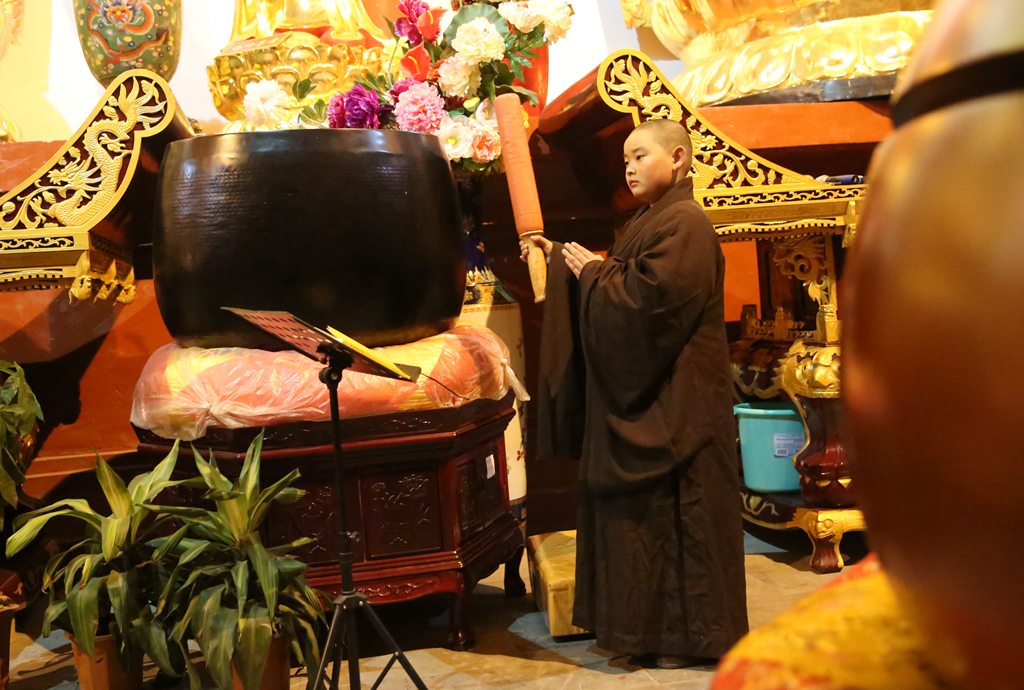 维那智鸿师父只有十岁,不仅唱腔流畅准确,唱诵字正腔圆,而且泰然沉静,具足威仪。