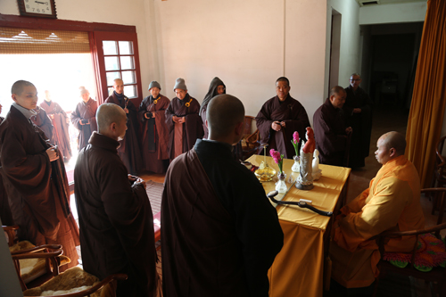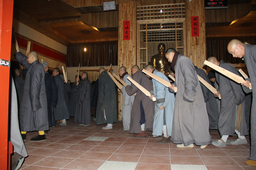 晚殿后,两序大众在维那师父的率领下,排班去丈室向方丈和尚告“生死假”。