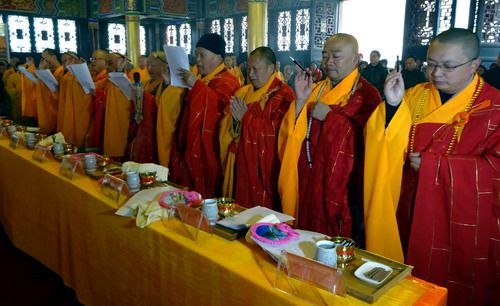 2014年12月8日,四川达州市真佛山德化寺隆重举行念佛堂新塑西方三圣像开光暨原住持船福和尚圆寂三周年传供法会,参加法会的僧众、居士及信众达500多人。