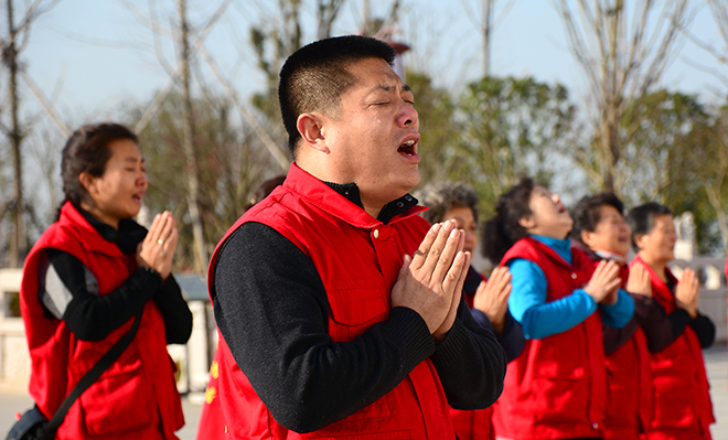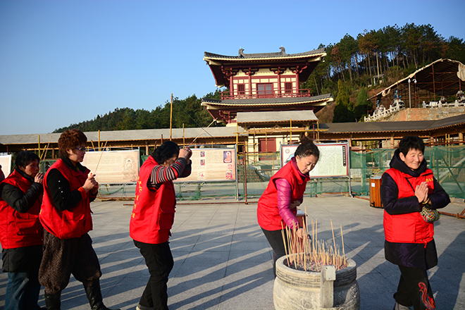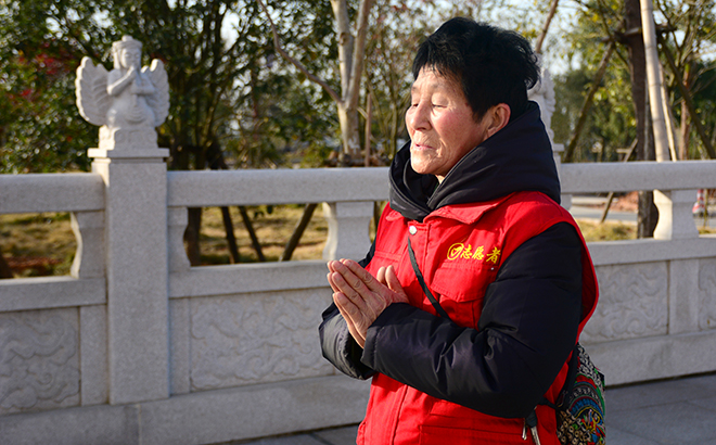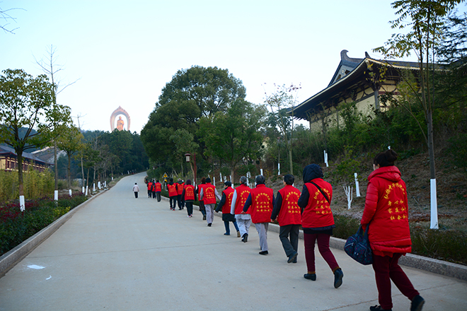 31名团员都受过三皈五戒,年纪最大的宋居士76岁。他们发愿在冬至前走遍祖国六大净土道场,已经参访了海岛金山寺、河南南阳来佛寺、九华山等圣迹。领队熊居士46岁,四年前得了脑血栓,在长春治疗期间接触佛法。真信切愿念佛后,他的病慢慢就好了,从此他就发愿每天在家拜佛1000次,忏悔业障,并发愿今生一定往生极乐世界!