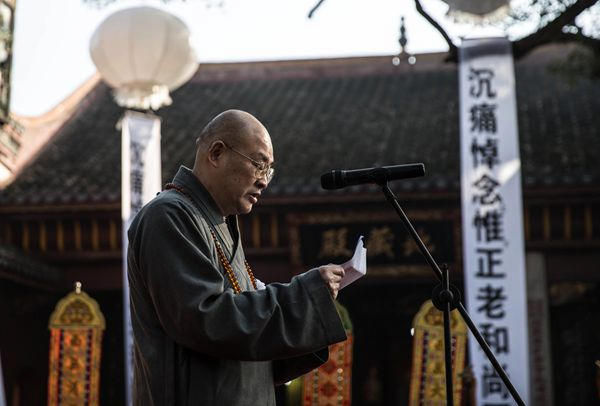 中佛协副会长、湖南省佛协会长圣辉法师致悼词