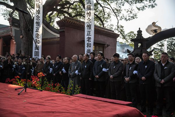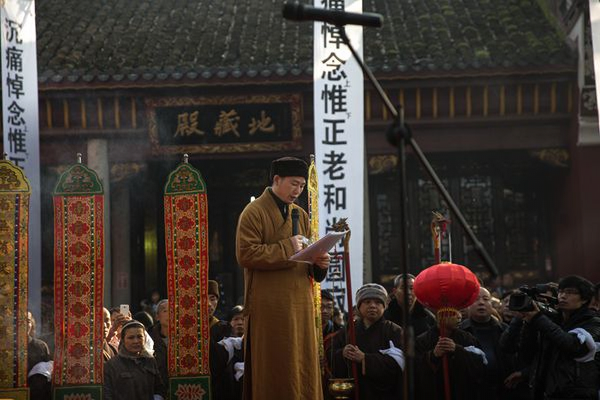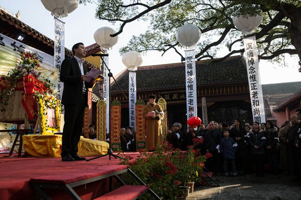 金炉香冷,草木同悲。2014年12月4日上午,中佛协咨议委员会副主席惟正长老追思大会在湖南南岳祝圣寺举行。湖南省委统战部、省民宗局、衡阳市,南岳区党政领导以及省内外的各界人士、诸山长老、四众弟子近千人参加追思大会,为惟正长老送行。