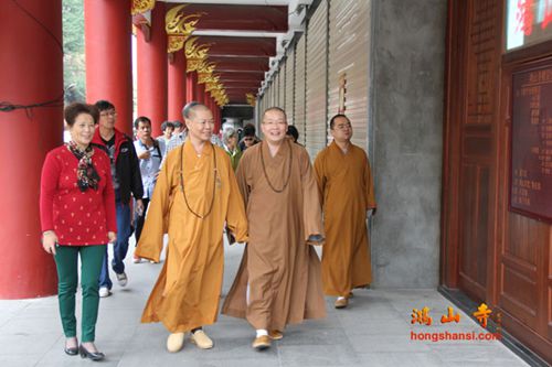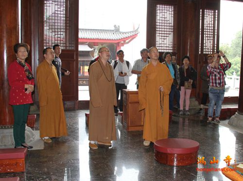 法达法师一行参观了鸿山寺各殿堂后,赞叹重建后的鸿山寺规模宏大。并提到护持场道需要四众弟子的共同努力,如果能引导更多的人到此学习佛法,更广泛地绕益众生,将有更多的人护持三宝。
