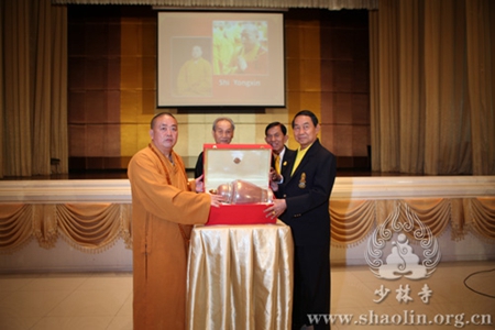 永信法师向大家介绍了少林寺下院——天津盘山北少林寺的历史以及北少林寺在历史上和中国佛教发展中的重要性,并表示,此次少林文化代表团参加佛像浇铸活动,将开启中泰佛教文化交流的新篇章,也具有里程碑意义。
