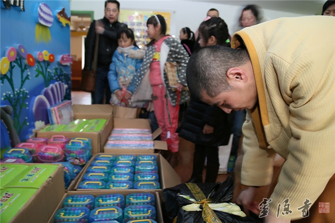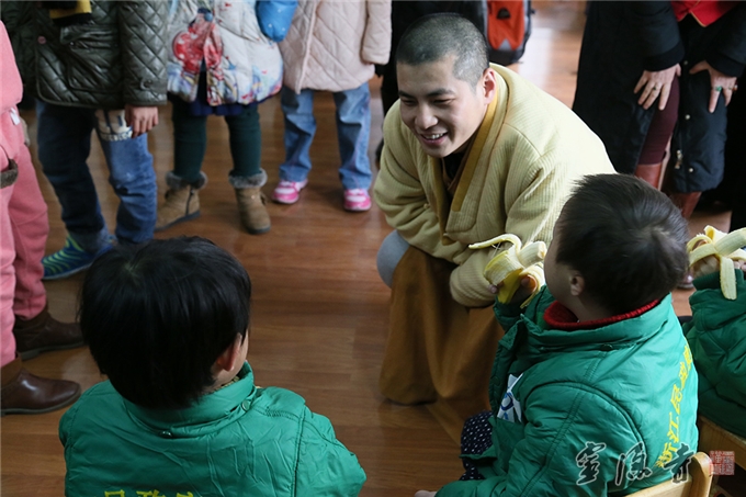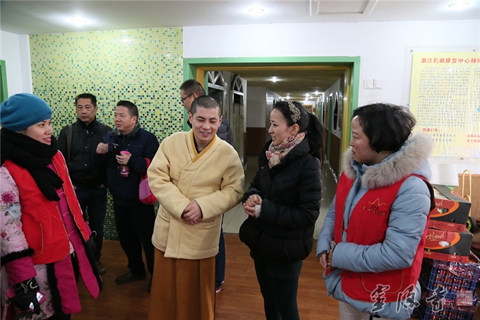 2014年12月21日,灵隐寺“寒冬送温暖”小队在杭州云林公益基金会两位法师带领下,为浙江康复中心的孩子们送去了棉衣、香蕉、蜡笔、小画板,不但温暖着孩子们的身体,还温暖了孩子们的心。