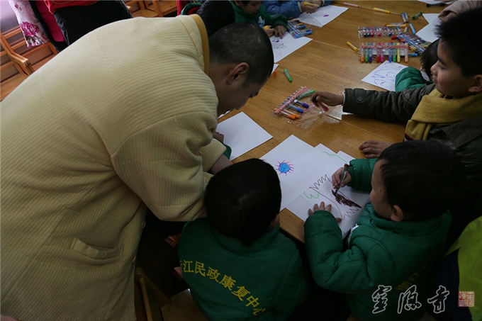 “叔叔教你画太阳”、“姐姐‘送’你一朵花”,法师和居士们还现场当起了老师,手把手地教起孩子们画画儿。几个活泼的孩子骄傲地向大家展示自己完成的“大作”:“这是我画的……”