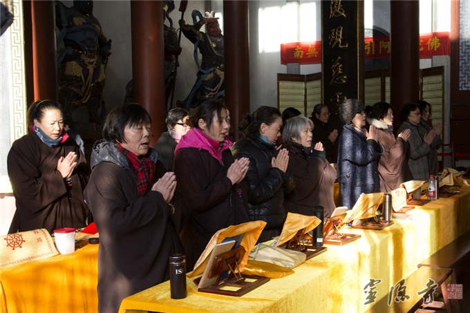 整个佛七期间,杭城寒意袭人,但法喜却一直伴随道场的每一位修行人。在法师们的引领下,信众居士们在药师殿内和师父们一起精进共修,诵念《地藏经》,回向十方法界,愿佛哀愍娑婆众生,接引往生安养刹土,速证无上菩提。并且不断对内心进行自我观照,长养善根,坚固道心。