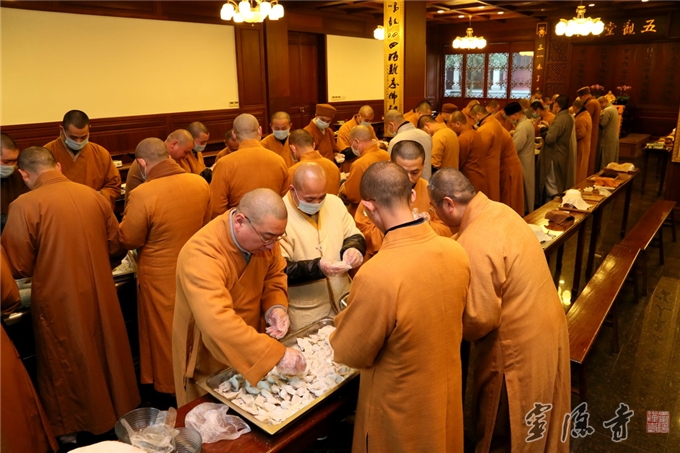 当天是农历十一月初一冬至日,俗称“冬节”,大众法师还齐集斋堂,亲手和面、擀皮、包饺子,共度这一传统节日。