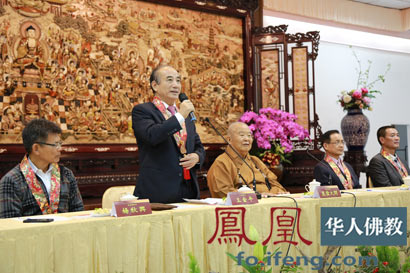 中华传统宗教总会筹备会总会长王金平致词。(图片来源:凤凰佛教)