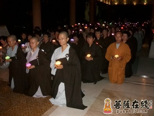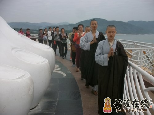 12月11日凌晨,这些四众弟子们还不等天亮就早早起床,排着整齐的队伍,一路高声念诵“南无观世音菩萨”朝着拥有“世界级、世纪级工程”美誉的108米高大慈大悲的观音菩萨圣像进发,并三步一拜。