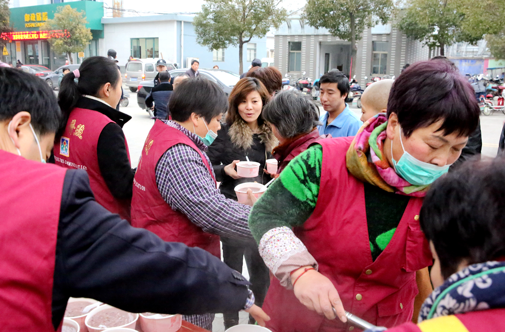 老菩萨将火烧得很旺,千百年来,每到腊月初八,柴火总将粥香点燃,熏黑的灶墙映衬着的,总是喝粥时的丝丝甜蜜,施粥时的暖暖心意。