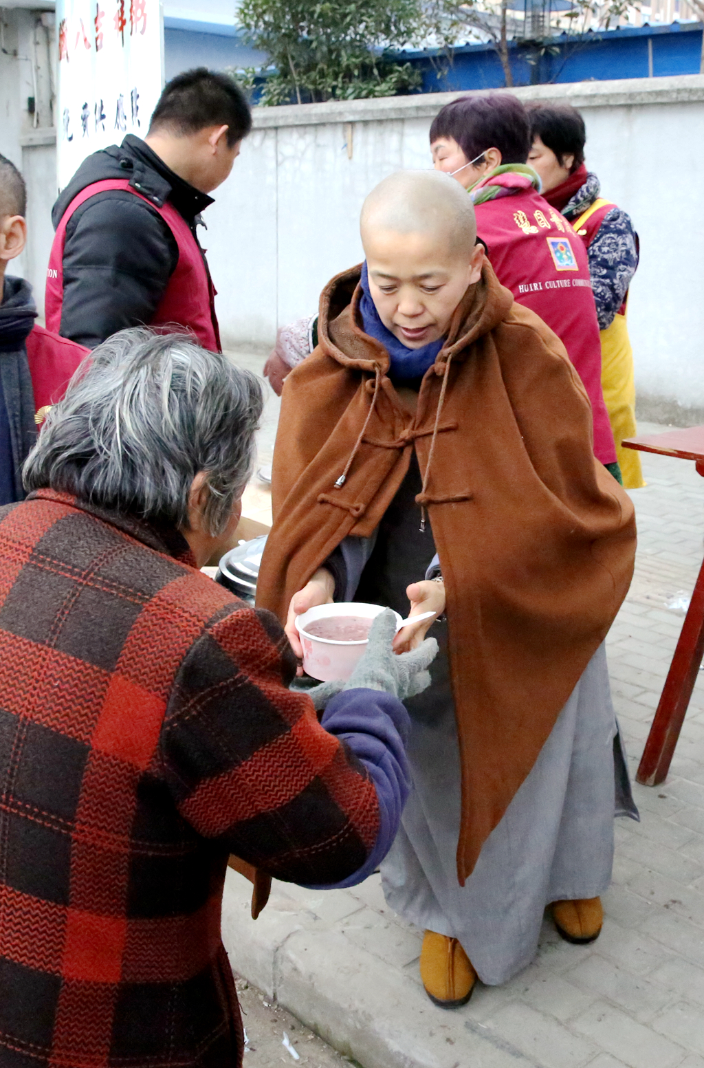 源源不断的腊八粥从寺院里送来,僧俗合心,将爱与祝福遍洒大地。