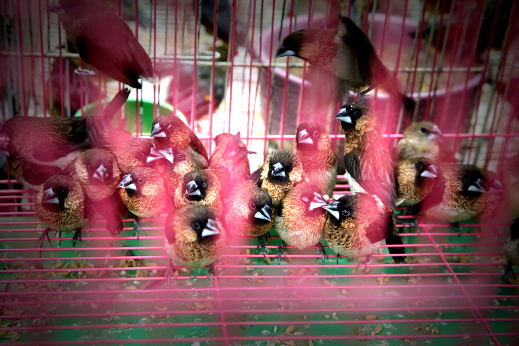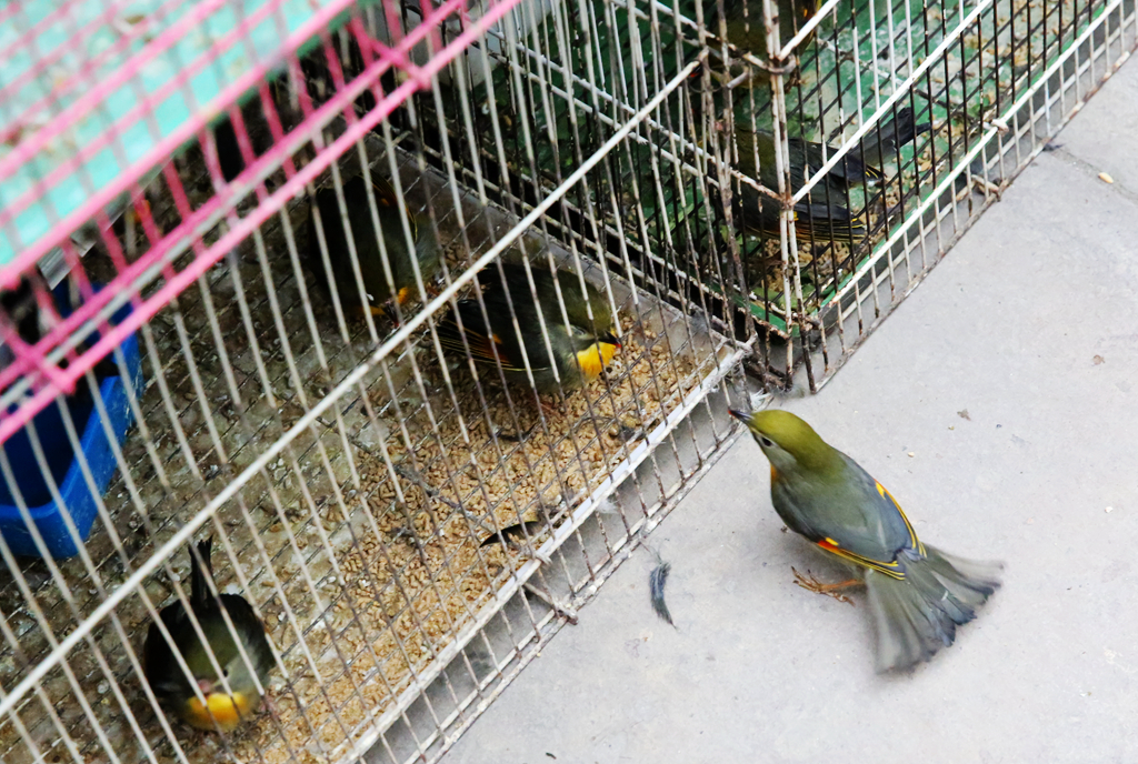 鸟儿隔栏探望,笼中的说:“我久处牢狱,不知外面天空,君知其面目乎?”笼外的言:“广阔无边,乐不能表,更有腊八粥可食,你快出来吧!”
