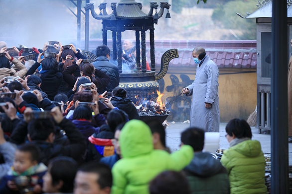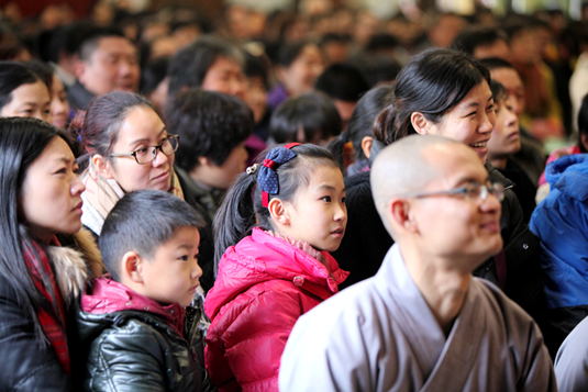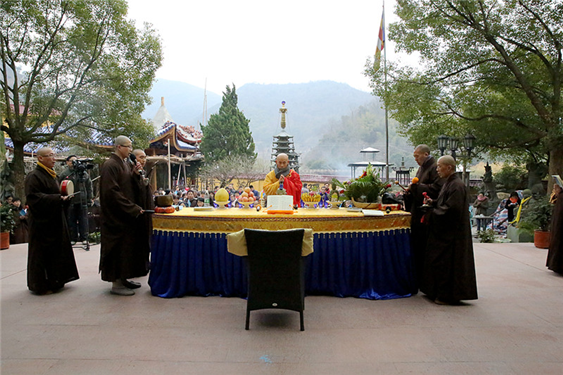 2015年1月7日(农历十一月十七),欣逢阿弥陀佛圣诞日,宁波慧日禅寺圆满了为期六天的诵经法会。凌晨四点半,上传下喜法师于大雄宝殿主持了消灾祈福祝圣普佛法会。上午八点半,当家果义法师在三圣殿广场举行了放生法会。下午一点半,法堂之内,四众济济,香花满堂,上传下喜法师不辞辛劳,为超度包括上海踩踏事故中伤亡人员在内的一切有情众生,特主持了蒙山施食超荐法会。祈愿亡者离苦得乐、往生净土,生者身心康泰、安居乐业!