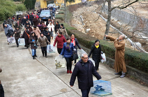 (信众心怀喜悦去放生)