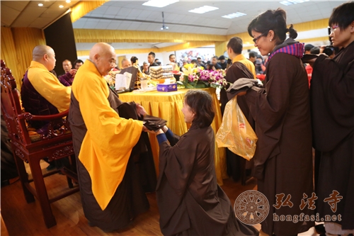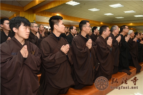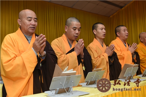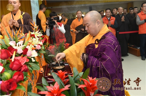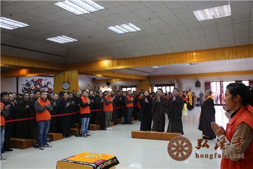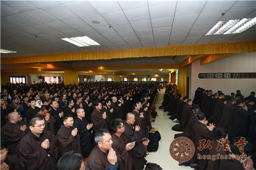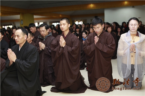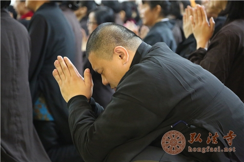 2015年1月7日,在这无比殊胜的阿弥陀佛圣诞日,弘法寺隆重举行千人三皈五戒法会,自全国各地近两千位信众一齐皈依三宝、纳受戒体。受十方信众的祈请,中国佛教协会副会长、海南省佛教协会会长、深圳弘法寺方丈印顺大和尚为大众皈依三宝及证盟授戒。