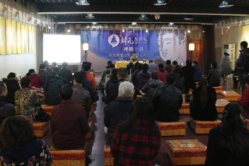 2015年1月17日这一天是普通的星期六,可是这一天,归元禅寺2015年归元大讲堂禅修一日正式开课,这是2015年归元大讲堂的第一堂课,在讲座开始之前原武汉市市委宣传副部长陈元生致开幕词,他从“归元”两字上,说文解义,给大家阐述了归元大讲堂的缘起以及为什么会在归元禅寺开办归元大讲堂?同时说道,“希望大家能够在这里不断地提升自己,习佛学、悟禅道、结善缘、证圣果。”上午10点整由来自于东南大学人文学院哲学系教授,佛教文化研究所所长,西藏民族学院教授,兼任金陵图书馆馆长、中国佛学院栖霞分院三论宗研究所常务副所长,董群教授为大家讲述“传统文化中的核心价值观”,讲述中国历史上传统的价值观,让大家通过这些了解佛教和这些传统价值观之间的关系,同时在自己的生活中能够树立起正确的价值观,能够坚守自己的准则,做到“诸恶莫做,众善奉行”。