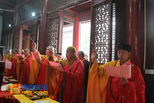 10点30分,山门重建上梁法会在天王殿广场前如法如律的举行,大兴善寺方丈宽旭法师、长安护国兴教寺方丈宽池法师、石佛寺住持演德法师、卧龙寺住持常礼法师、紫竹林住持宽印法师、大兴善寺后堂演正法师、大兴善寺监院罗福法师共同拈香主法,宽旭法师为上梁宣说法语。三宝僧伽携领十方善信,讽诵经咒,共同祈愿风调雨顺,国泰民安,海众安和,祖道兴隆;檀越及与会信众皆事业成就,阖家安康;参加法会的十方信众感恩随喜,身心无不洋溢着喜悦之情,山门重建上梁法会圆满殊胜。