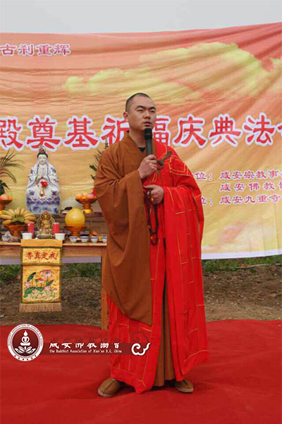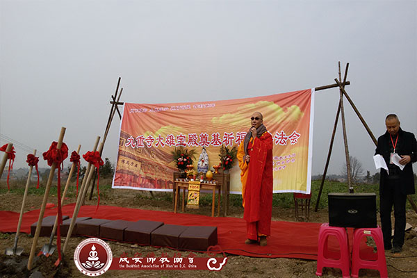 咸安大乘禅寺主持心平法师为九重寺奠基致辞