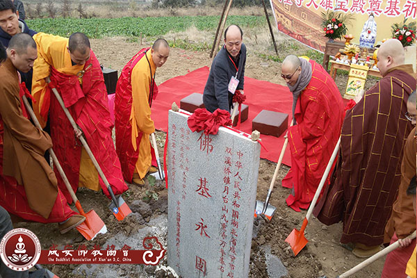 咸安佛教协会胡刚秘书长主持奠基典礼