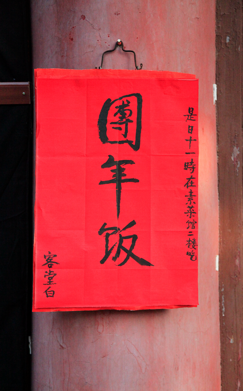 五祖寺老僧人手书团年饭启示牌