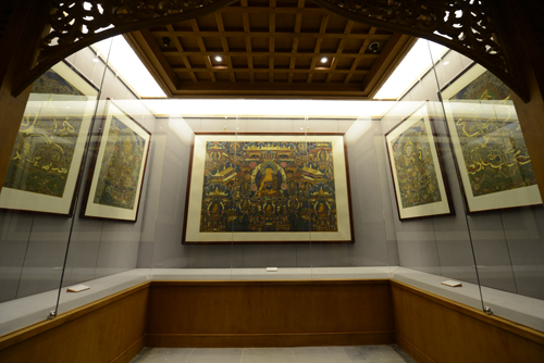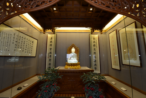 书画是反映佛教文化的一个重要载体,对佛教文化的传承起着重要作用。 而书画的过程亦是净化心灵的过程,佛教书画闪耀着智慧的光芒,其展现的真善美境界,是中华文化乃至全人类共同的宝藏。 天宁宝塔第十二层《书画宝藏》, 主题是墨表心迹, 明心见性。集中展示了历代高僧、著名书法家、画家、金石家的佛教艺术作品。目前,在本层展示的有中国佛教协会副会长以上(含中国佛教协会咨议委员会副主席以上)人员的作品,如赵朴初、本焕、茗山、一诚、传印、明学、松纯、德林、明哲、无相、圆霖等;有近现代海内外高僧的作品,如太虚、弘一、圆瑛、密林、星云、绍根、隆根等。另外还展示了一批当代书画家的佛教题材书画作品。