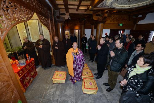 传统佳节“腊八”,也是释迦牟尼佛成道日。天宁禅寺特别选在腊八上午,举行天宁宝塔第十二层“书画宝藏殿”落成开光仪式,天宁寺方丈松纯大和尚亲自主礼,市内外有关方面的多位嘉宾参加了活动。
