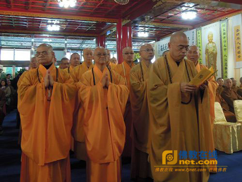 台湾中国佛教会理事长圆宗长老,台湾中国佛教会副理事长明光法师,如本法师共同主法