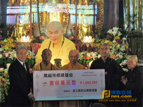 普陀山佛教协会现场捐助万福寺修建基金人民币100万