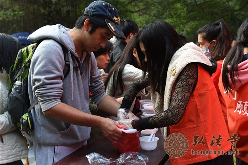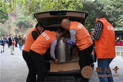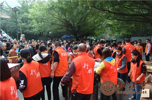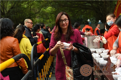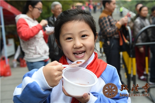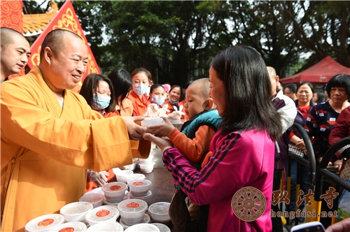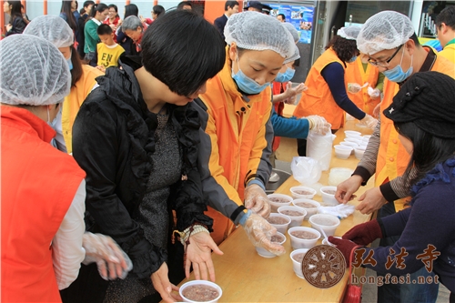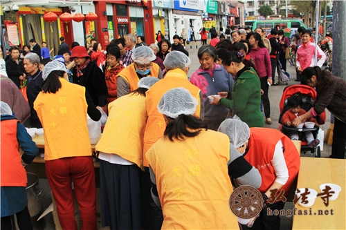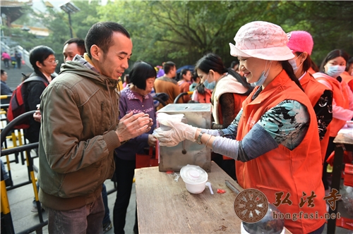 2015年1月27日,农历腊月初八,弘法寺隆重举办一年一度的腊八免费施粥活动。中国佛教协会副会长、海南省佛教协会会长、深圳弘法寺方丈印顺大和尚带领弘法寺常住法师、护法义工等,与前来参加的广大市民共同过一个喜庆、平安、吉祥的腊八节日,并向广大市民及十方信众馈赠腊八福粥,上万名信众、市民随喜参加,欢喜受纳。