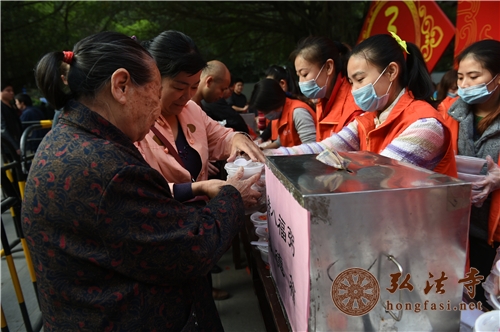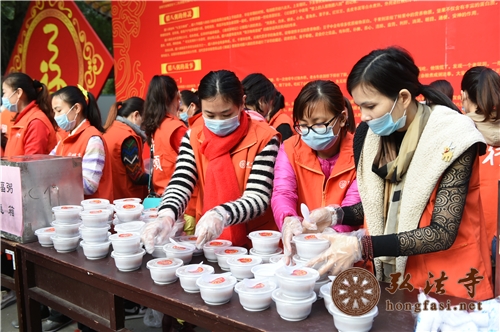为纪念佛祖释迦牟尼成道日,同时与广大民众共度中国传统的腊八节日,弘法寺秉承佛陀慈悲喜舍的弘愿和开山祖师本焕长老行愿大千的精神,每年都会举行形式多样的慈善活动,助贫济困、利益众生、福利社会,其中每年的腊八免费施粥也是其中活动之一,深受大众喜爱,收到良好的社会效果,大众同享欢乐,喜迎吉祥。