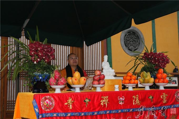 方丈讲经说法结束后,在阵阵鼓乐和声声梵呗中,祈盼已久的传供祈福法会终于开始。