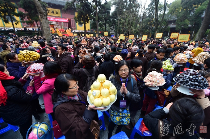 今年,为确保寺院的安全、有序,也为了让大众过上一个安全祥和的腊八节,灵隐寺内当天没有对外发放腊八粥,而是以讲经、传供等方式纪念本师释迦牟尼佛成道,这在灵隐寺还是首次。灵隐寺大众将这份法喜回向给即将到来的2015乙未羊年,并祈福世界和平,国泰民安,风调雨顺,人民幸福。