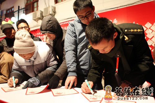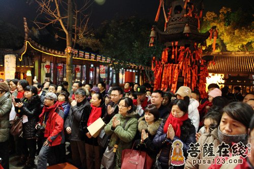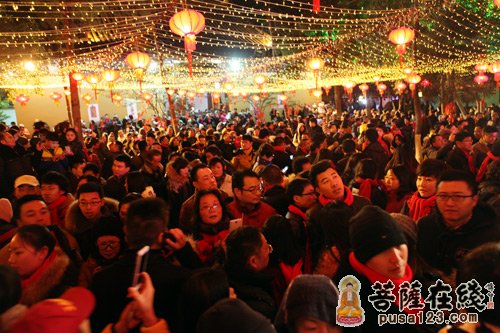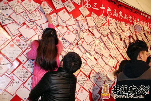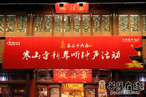 2014年12月31日晚,寒山寺内外张灯结彩,笑脸盈盈,喜气洋洋,一派祥和的节日气氛,寒风挡不住人们前来聆听寒山寺三十六届新年钟声的脚步。祈福墙上贴满了一个个新年愿望;福照墙中秀出一张张幸福的照片。领个福牌带回家,愿一年好运;请副春联帖家门,愿事业和顺。在年代墙前留个照,拾起儿时的记忆;江枫桥上合个影,品味千年的诗韵。